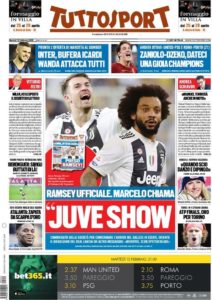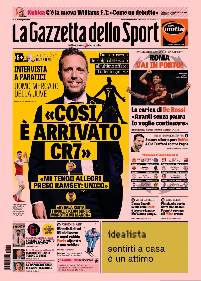 Le prime pagine dei quotidiani sportivi del 12-02-2019