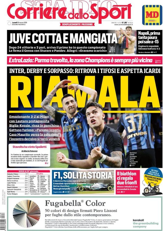 La nostra redazione vi augura buona giornata con le prime pagine dei quotidiani sportivi di oggi