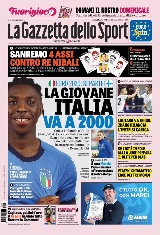 La nostra redazione vi augura buona giornata con le prime pagine dei quotidiani sportivi di oggi