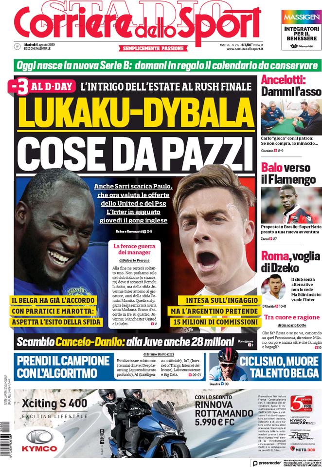 Le prime pagine dei quotidiani sportivi del 06-08-2019