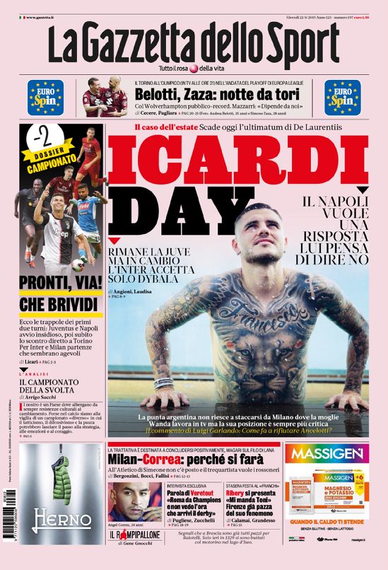 La nostra redazione vi augura buona giornata con le prime pagine dei quotidiani sportivi di oggi