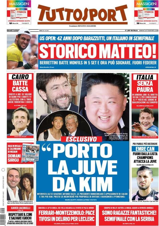 Le prime pagine dei quotidiani sportivi del 05-09-2019