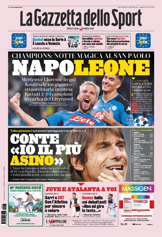 La nostra redazione vi augura buona giornata con le prime pagine dei quotidiani sportivi di oggi