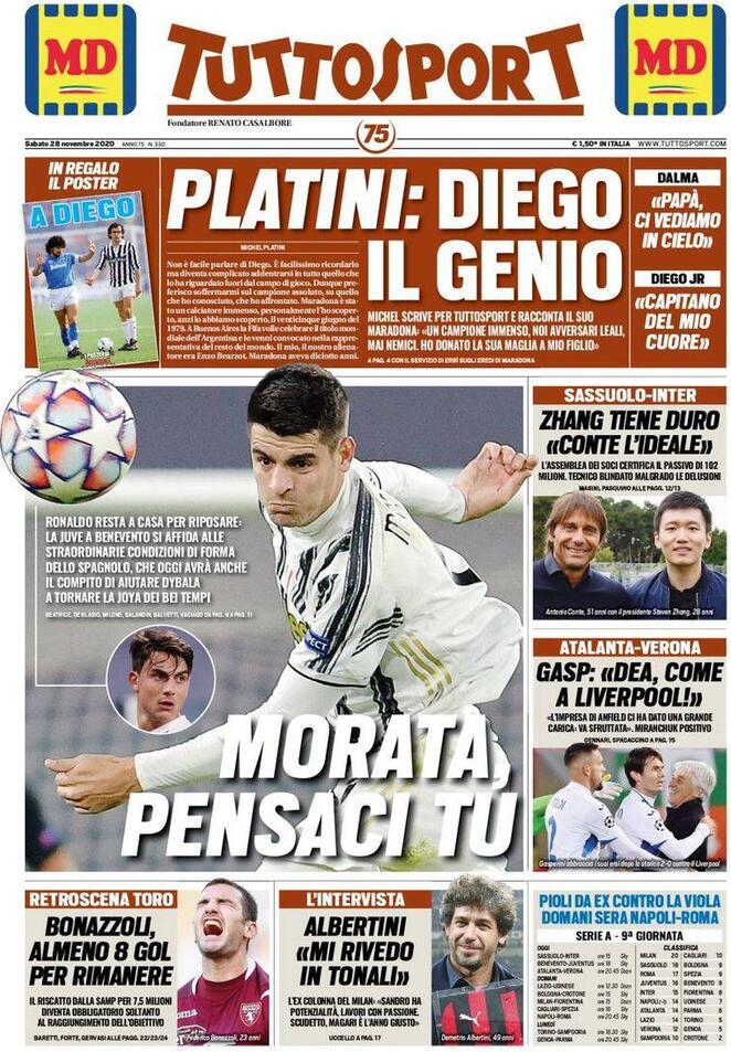 Le prime pagine dei quotidiani sportivi del 28-11-2020