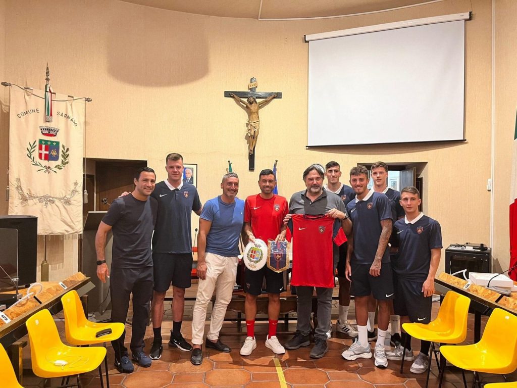 Alcuni calciatori sono stati ricevuti dal Sindaco della cittadina marchigiana prima della partenza per Cascia I rossoblu hanno salutato le...