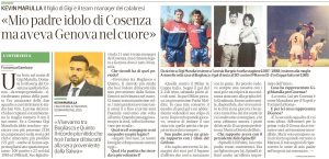 Il collega Francesco Gambaro sulle pagine del Secolo XIX ha intervistato Kevin Marulla, team manager del Cosenza, alla vigilia della sfida con il Genoa. Ovviamente si è parlato di Gigi, perché quella di sabato pomeriggio, ore 14, sarà una festa nel nome del grande capitano scomparso nel 2015. “Se a Cosenza Gigi Marulla fu idolo assoluto o giocatore con più presenze (330) nella storia del club e attaccante più prolifico (91 gol) o anche al Genoa seppe ritagliarsi uno spazio importante: 100 partite e 23 reti dal 1985 al 1988 in B”.