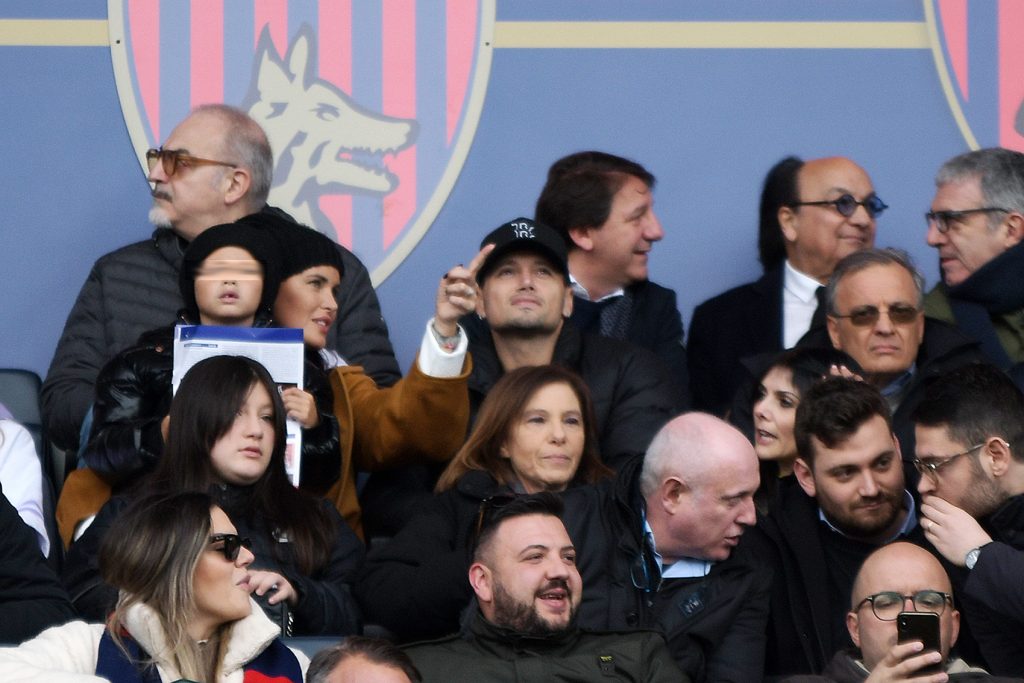 Lāattaccante rossoblu ha fatto il tifo per i suoi compagni di squadra dalla tribuna del Marulla insieme a sua moglie...