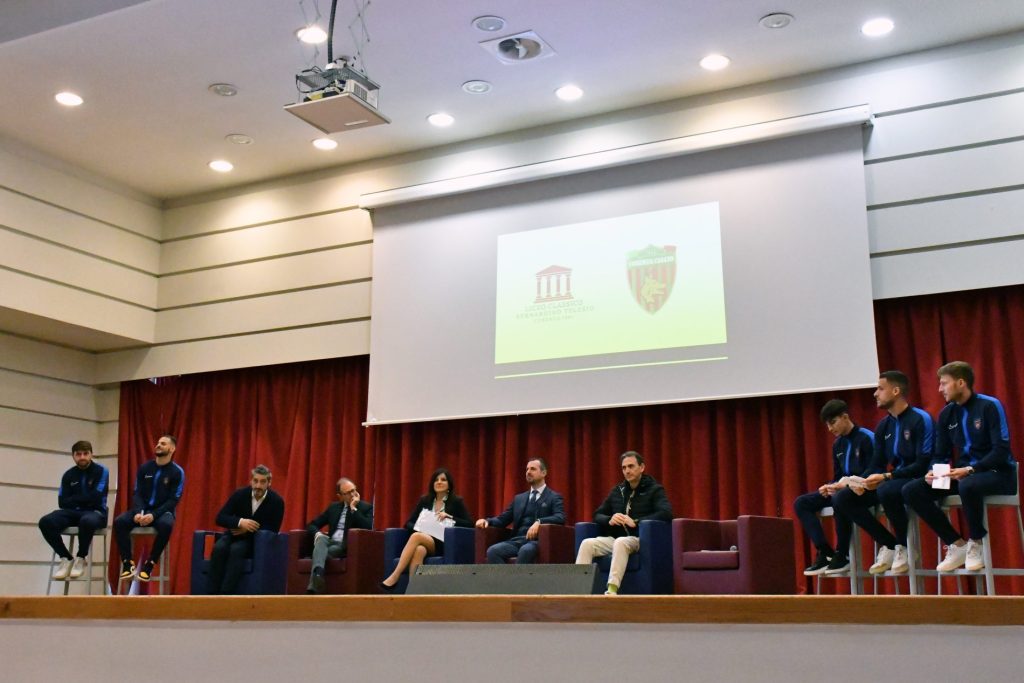 Alcune immagini dell'incontro che si è tenuto al Liceo Classico Telesio con Calò, Canotto, Florenzi, Meroni, Voca e il direttore...