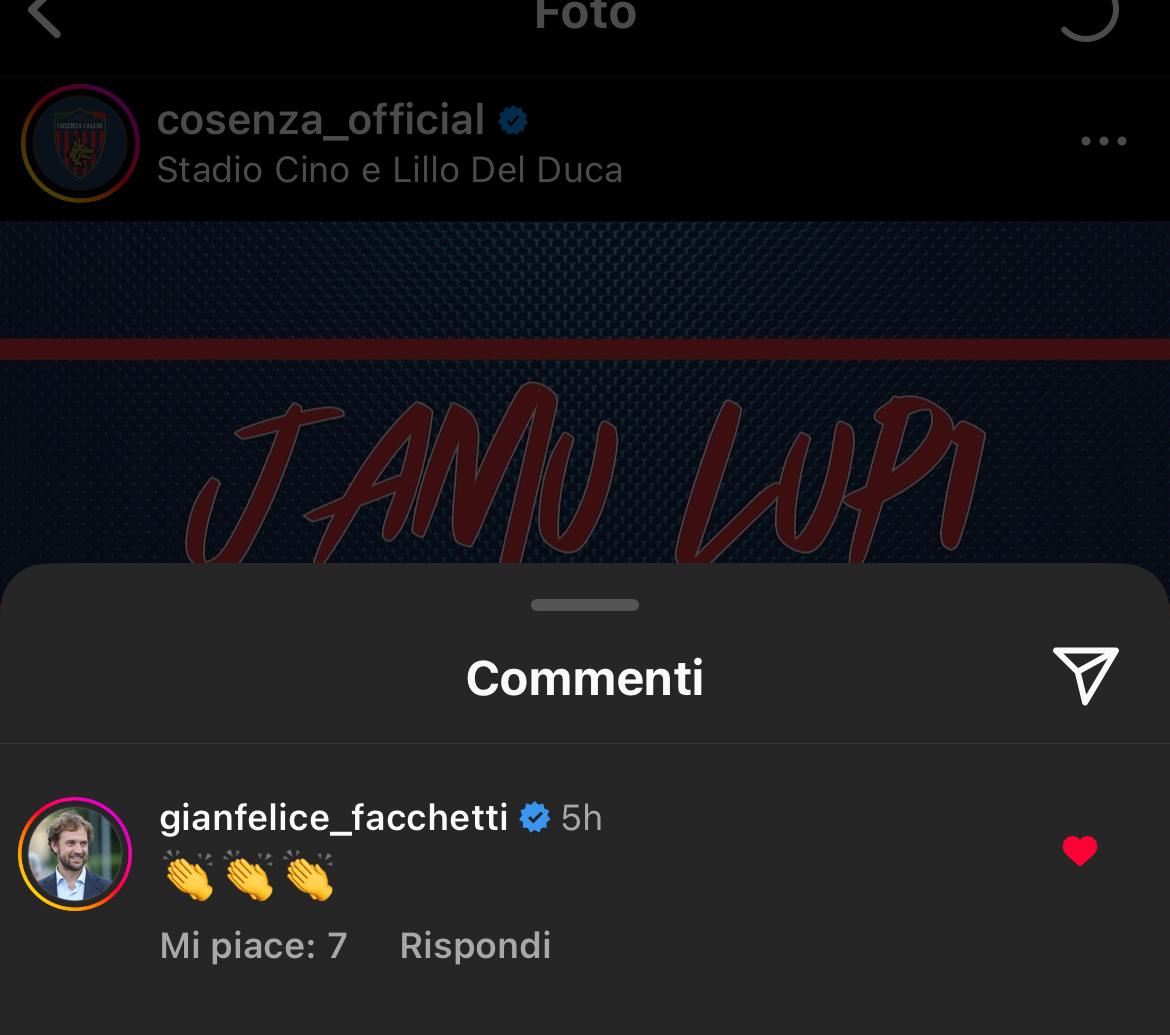 Dopo la grande vittoria contro l’Ascoli, il Cosenza ha garantito la sua permanenza in Serie B, evitando così i pericolosi playout. Tra i numerosi commenti sulla pagina Instagram del club rossoblù, ha attirato l’attenzione il messaggio di Gianfelice Facchetti, figlio dell’ex capitano dell’Inter Giacinto e noto volto della “Domenica Sportiva”.